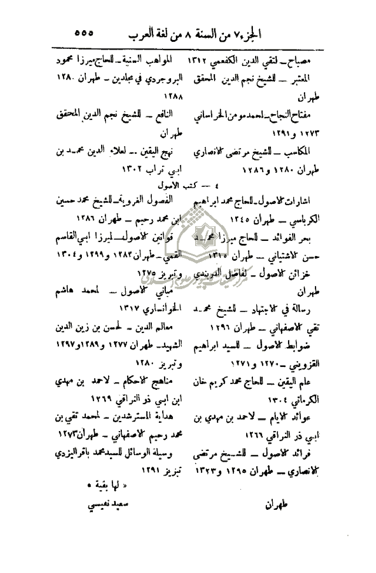 هداية المسترشدين - لمحمد تقي بن محمد رحيم الأصفهاني - طهران 1273.
