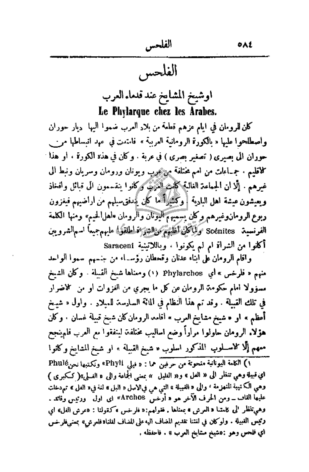 وأقام الرومان على أبناء عدنان وقحطان رؤساء من جنسهم سموا الواحد منهم (فلرخس) أي ومعناها شيخ القبيلة. وكان الشيخ مسؤولاً أمام حكومة الرومان عن كل ما يجري من الغزوات أو من الأضرار في تلك القبيلة. وقد تم هذا النظام في المائة السادسة للميلاد. وأول (شيخ أعظم) أو (شيخ مشايخ العرب) إقامة الرومان كان شيخ قبيلة غسان، وكان هؤلاء الرومان مراراً وضع أساليب مختلفة ليتفقوا مع العرب فلم ينجح معهم إلا الأسلوب المذكور أسلوب (شيخ القبيلة) أو شيخ المشايخ وكانوا