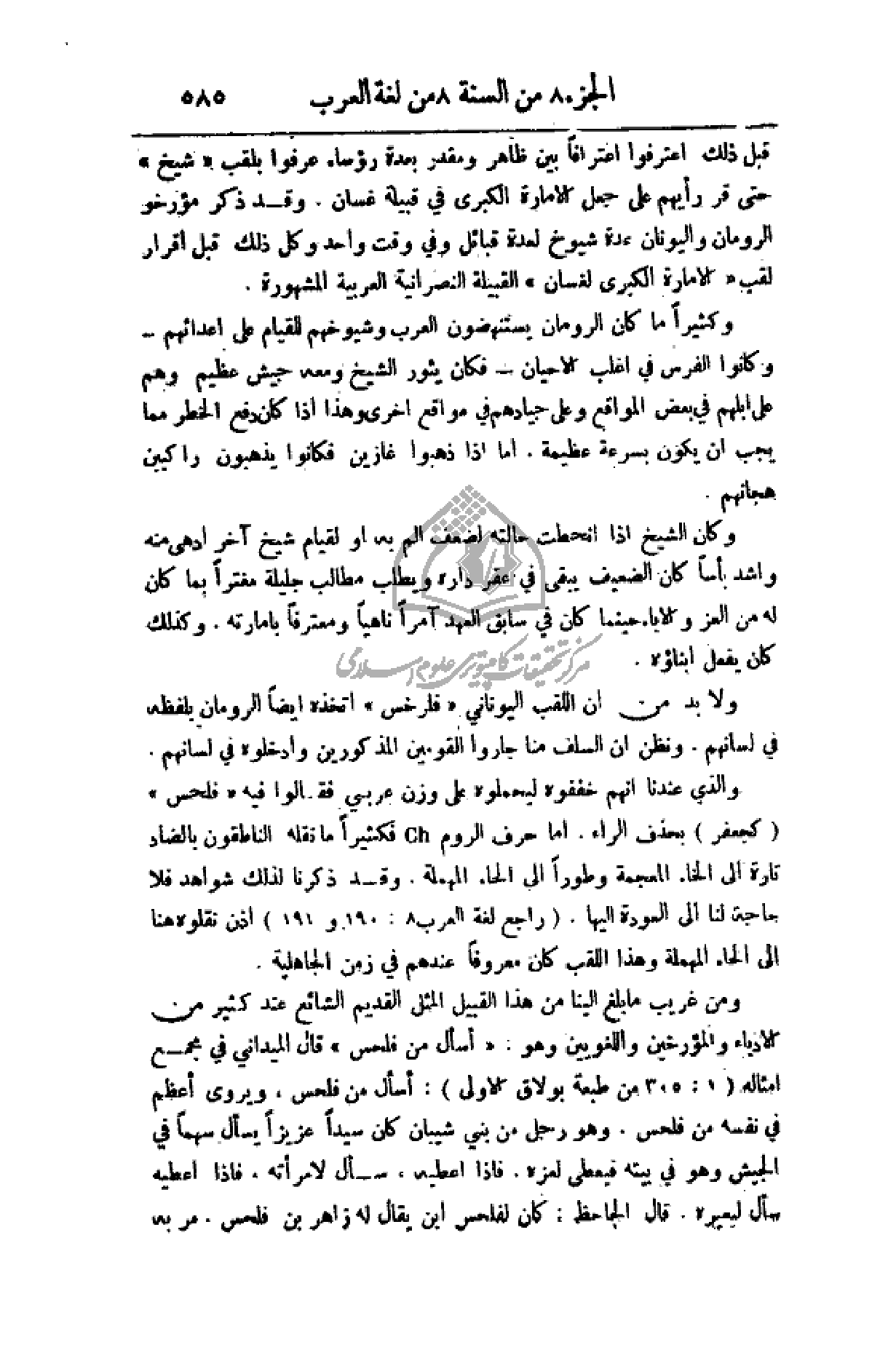 والذي عندنا أنهم خففوه ليحملوه على وزن عربي فقالوا فيه (فلحس) (كجعفر) بحذف الراء. أما حرف الروم فكثيراً ما نقله الناطقون بالضاد تارة إلى الخاء وطوراً إلى الحاء المهملة. وقد ذكرنا لذلك شواهد فلا حاجة لنا إلى العودة إليها. (راجع لغة العرب 8: 190 و 191) أذن نقلوه هنا إلى الحاء المهملة وهذا اللقب كان معروفاً عندهم في زمن الجاهلية.