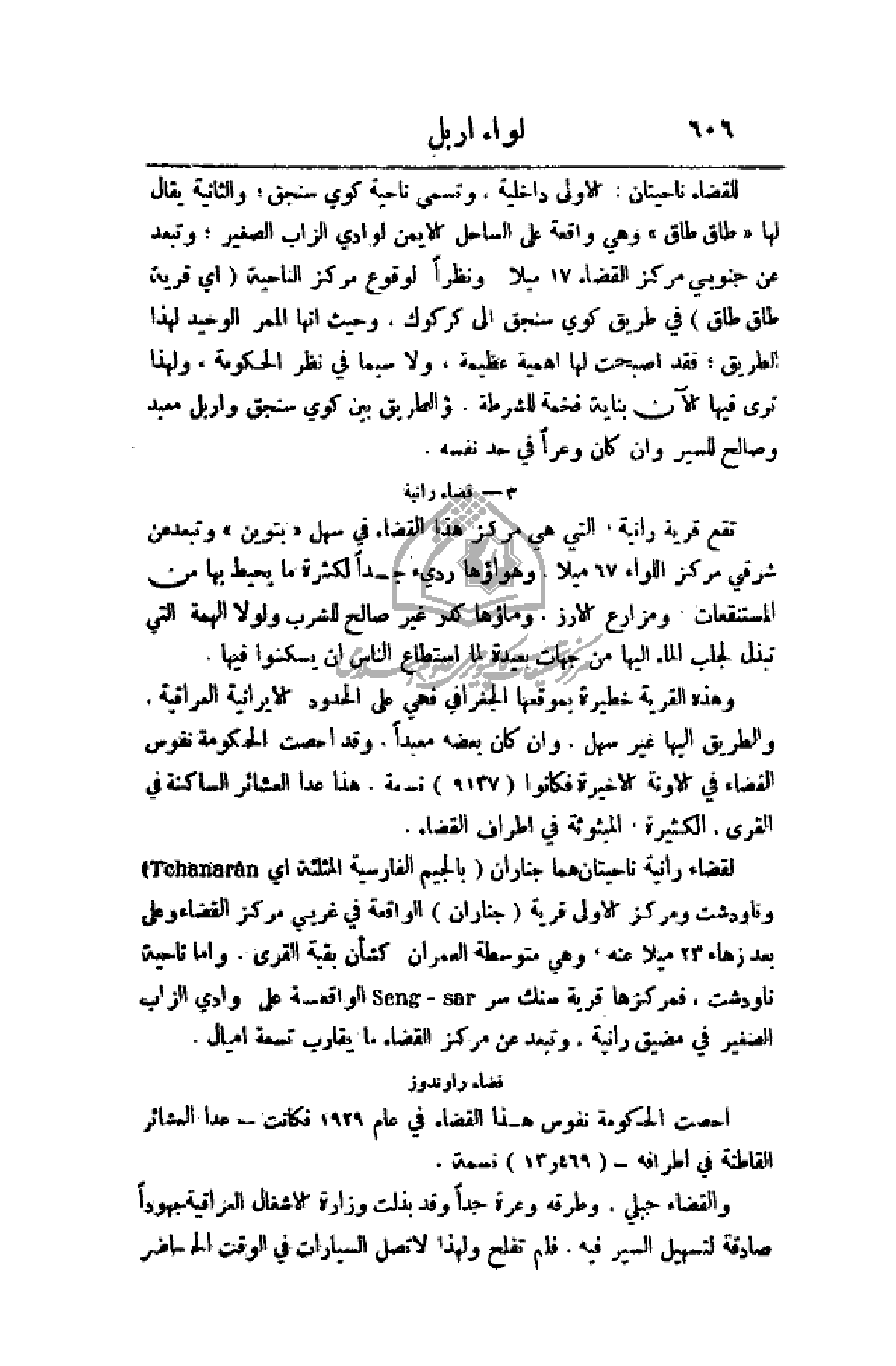 لقضاء رانية ناحيتان هما جنازان (بالجيم الفارسية المثلثة أي وناودشت ومركز الأولى قرية (جناران) الواقعة في غربي مركز القضاء وعلى بعد زهاء 23 ميلاً عنه، وهي متوسطة العمران كشأن بقية القرى. وأما ناحية ناودشت، فمركزها قرية سنك - الواقعة على وادي الزاب الصغير في مضيق رانية، وتبعد مركز القضاء ما يقارب تسعة أميال.