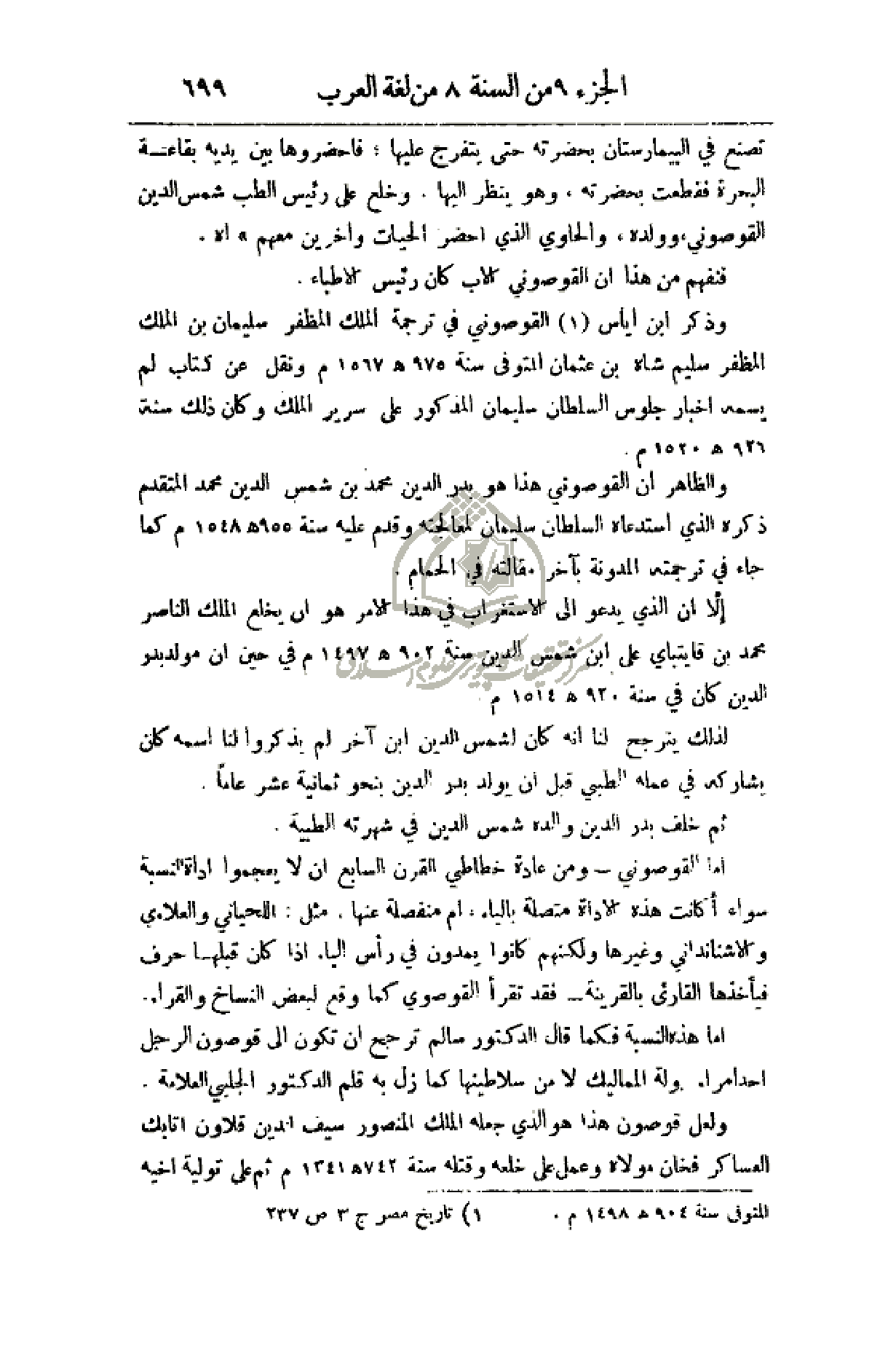 فنفهم من هذا أن القوصوني الأب كان رئيس الأطباء.