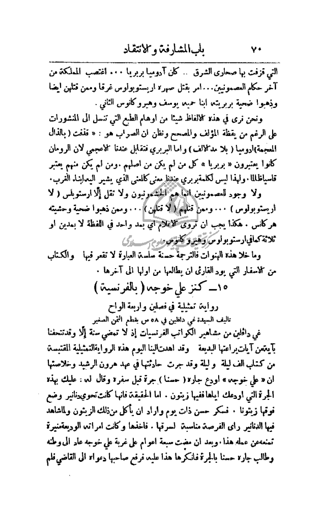 ولا وجود للعصمونيين إنما هم الحشمونيون ولا تقل إلا ارستوبلس (لا اريستوبولوس). . . وممن قتلهم (لا قتلهن). . . وممن ذهبوا ضحية وحشيته هركاس. هكذا يجب أن تروى الأعلام أي بعد واحد في اللفظة لا بمدين أو ثلاثة كما في ارستوبولوس وهيروكانوس.