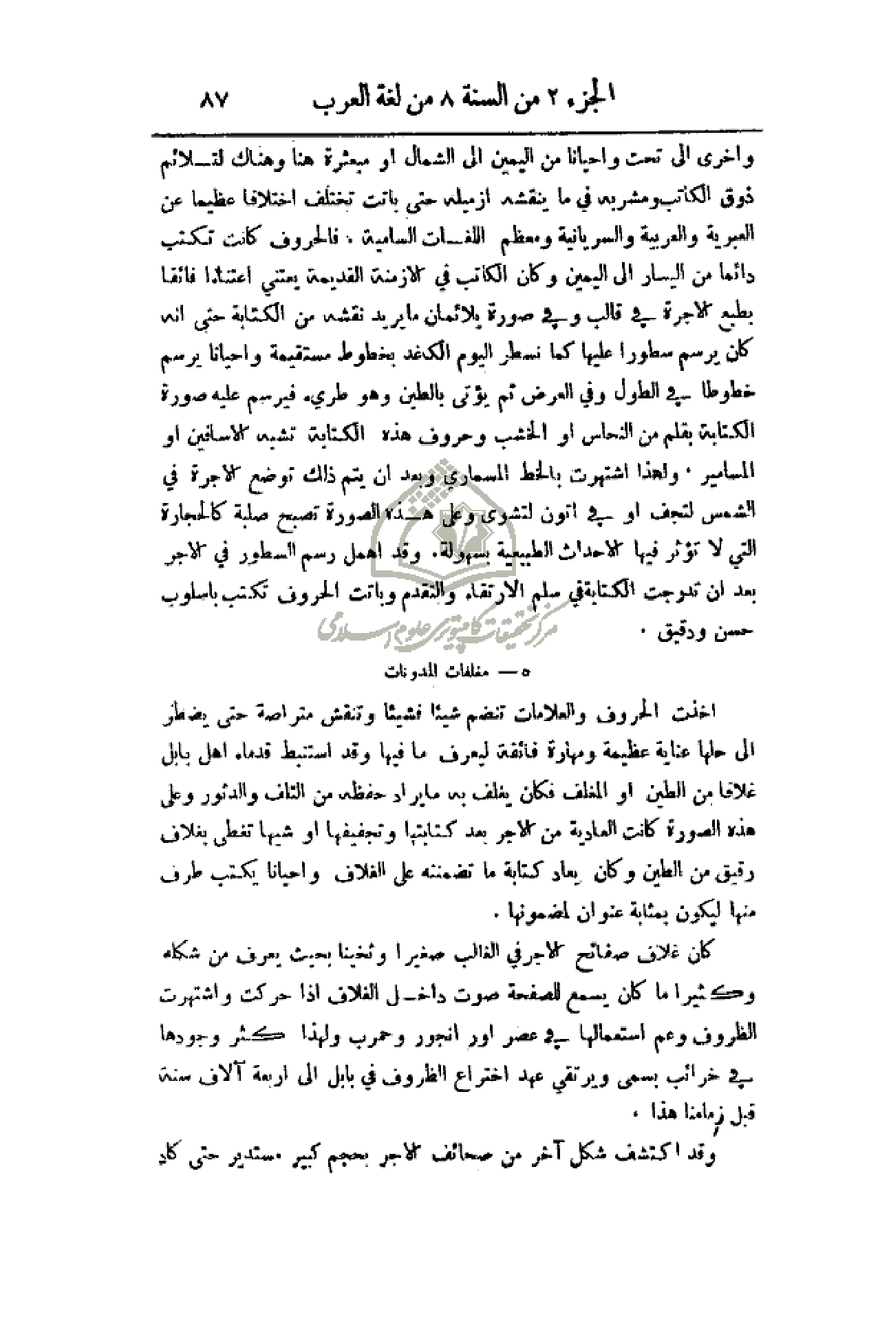 أخذت الحروف والعلامات تنضم شيئاً فشيئاً وتنقش متراصة حتى يضطر إلى حلها عناية عظيمة ومهارة فائقة ليعرف ما فيها وقد استنبط قدماء أهل بابل غلافاً من الطين أو المغلف فكان يغلف به ما يراد حفظه من التلف والدثور وعلى هذه الصورة كانت العادية من الأجر بعد كتابتها وتجفيفها أو شيها تغطى بغلاف رقيق من الطين وكان يعاد كتابة ما تضمنته على الغلاف وأحياناً يكتب طرف منها ليكون بمثابة عنوان لمضمونها.