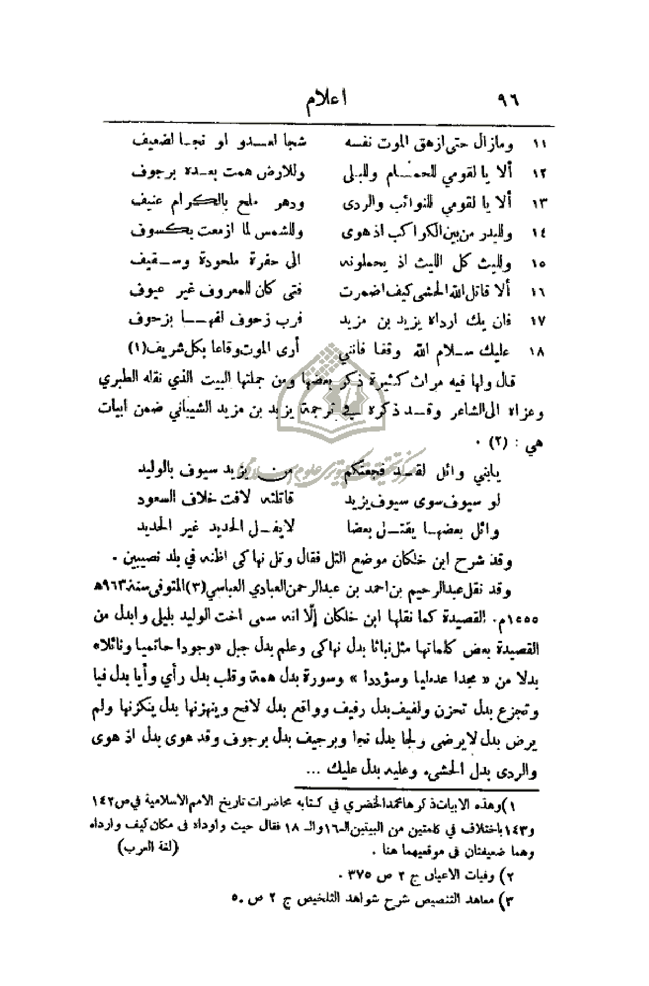 قال ولها فيه مراث كثيرة ذكر بعضها ومن جملتها البيت الذي نقله الطبري وعزاه إلى الشاعر وقد ذكره في ترجمة يزيد بن مزيد الشيباني ضمن أبيات هي: