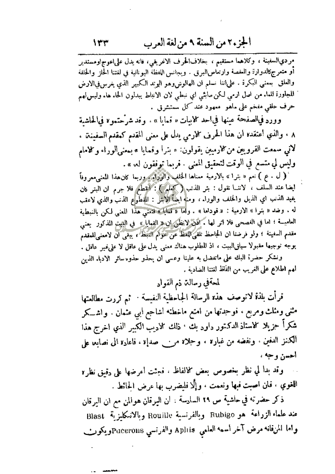 ونشكر حضرة ألبك على ما تفضل به علينا وعسى أن يحذو حذوه سائر الأدباء الذين لهم اطلاع على الغريب من ألفاظ لغتنا الصادية.