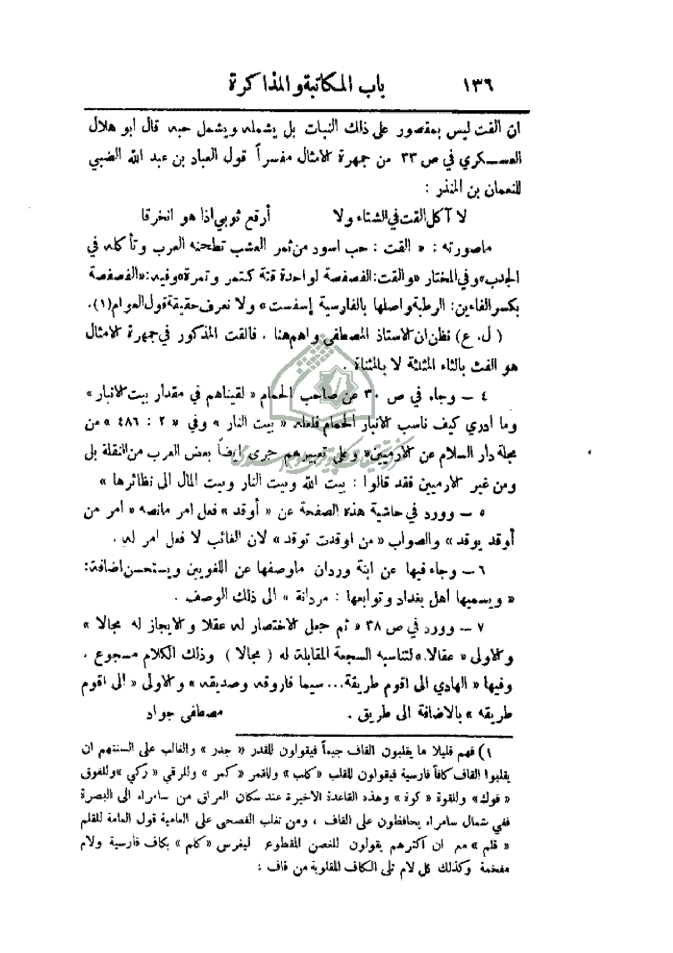 4 - وجاء في ص 30 عن صاحب الحمام (لقيناهم في مقدار بيت الأنبار) وما أدري كيف ناسب الانبار الحمام فلعله (بيت النار) وفي (2: 486) من مجلة دار السلام عن الآرميين (وعلى تعبيرهم جرى أيضاً بعض لعرب من النقلة بل ومن غير الآرميين فقد قالوا: بيت الله وبيت النار وبيت المال إلى نظائرها).