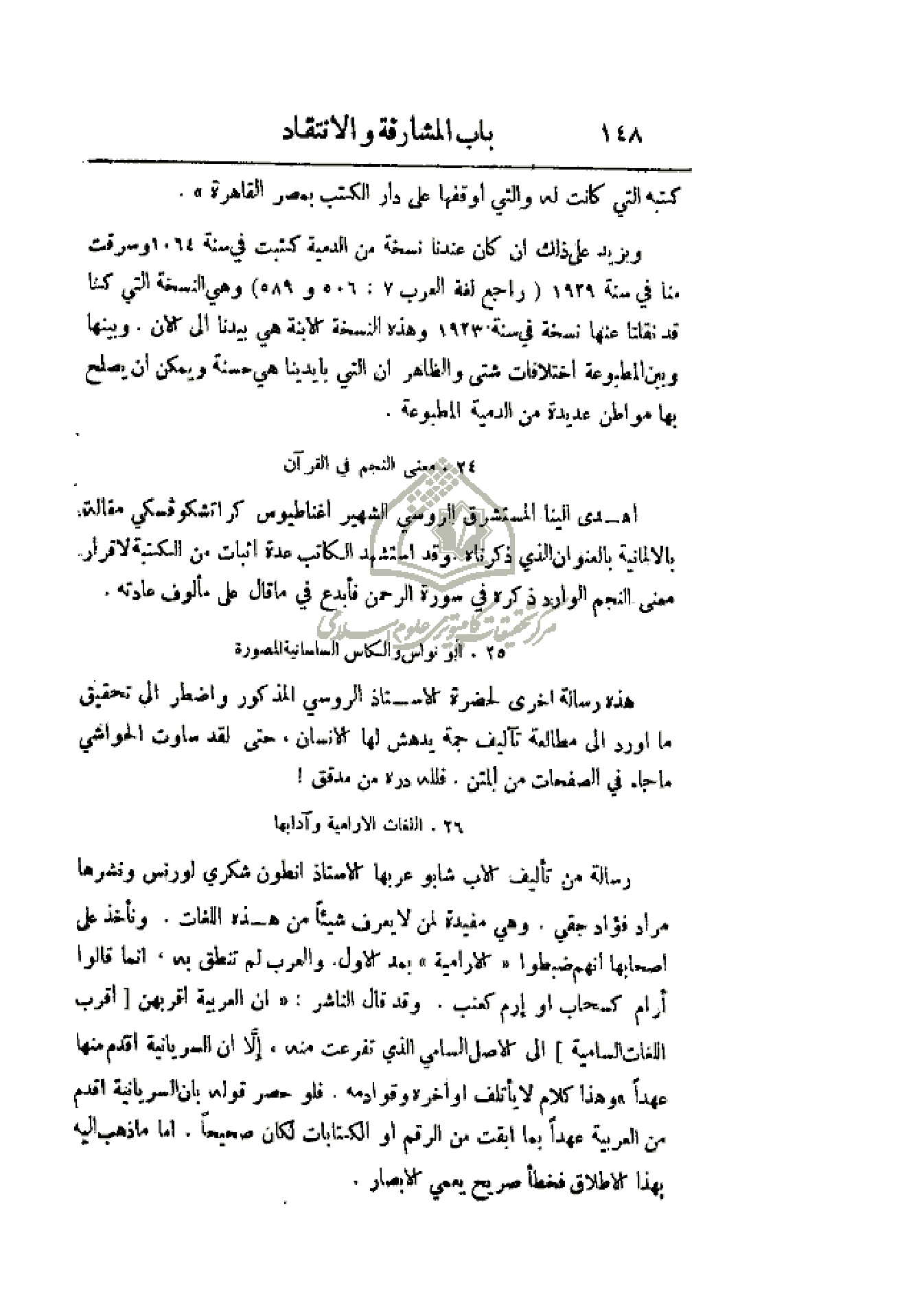 هذه رسالة أخرى لحضرة الأستاذ الروسي المذكور واضطر إلى تحقيق ما أورد إلى مطالعة تأليف جمة يدهش لها الإنسان، حتى لقد ساوت الحواشي ما جاء في الصفحات من المتن. فله دره من مدقق!