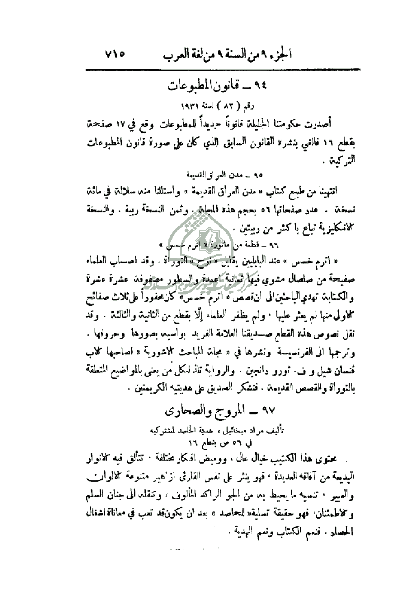 94 - قانون المطبوعات رقم (82) لسنة 1931.