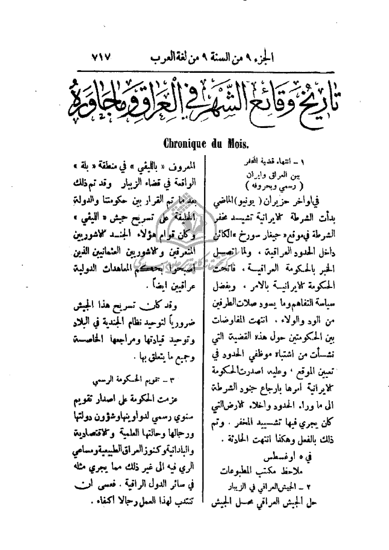 تاريخ وقائع الشهر في العراق وما جاوره