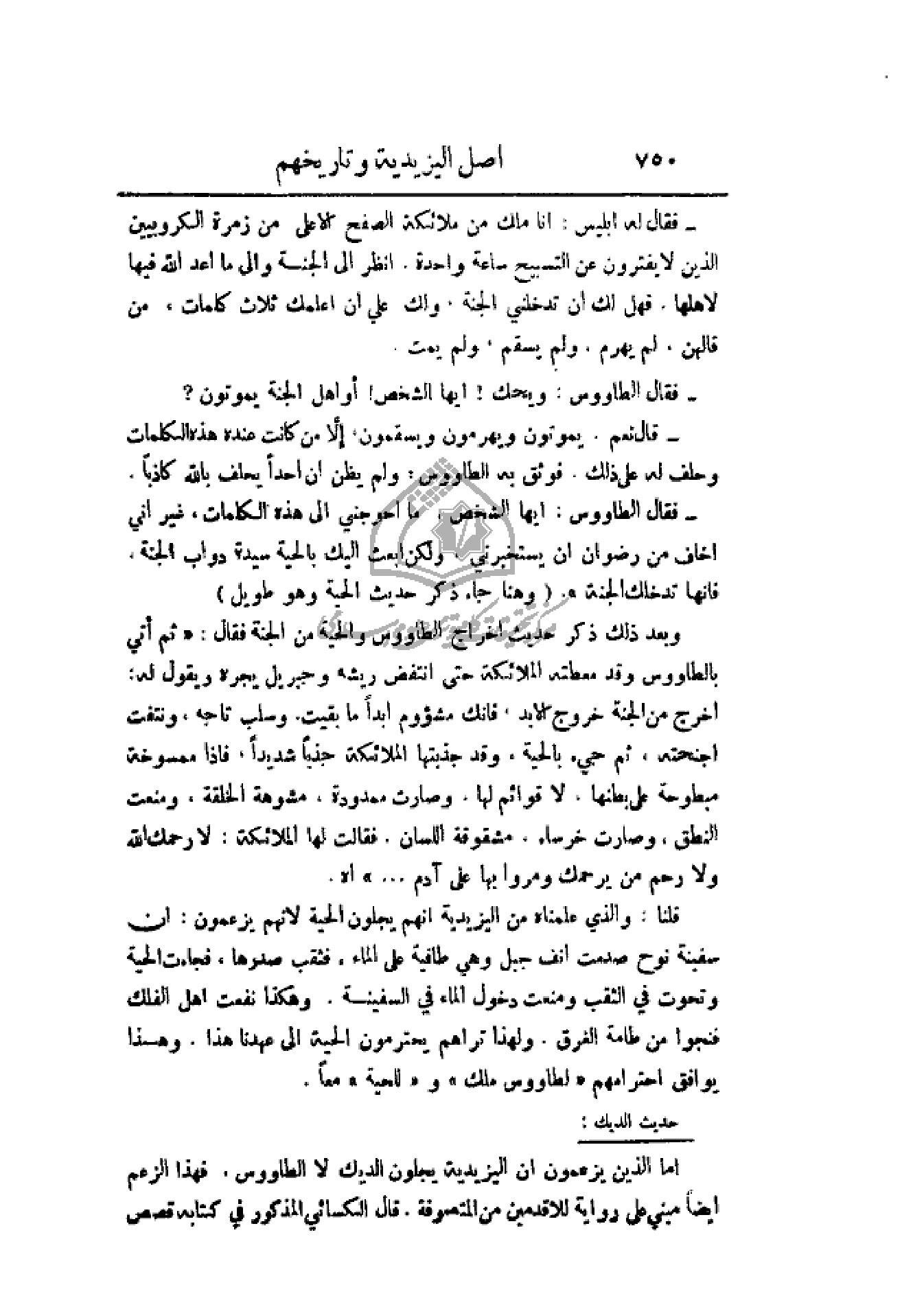 - فقال الطاووس: ويحك! أيها الشخص! أو أهل الجنة يموتون؟