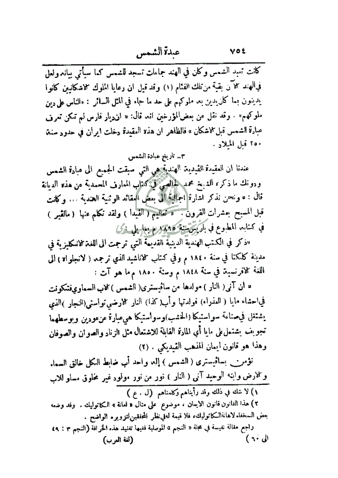 عندنا أن العقيدة الفيدية الهندية هي التي سبقت الجميع إلى عبادة الشمس ودونك ما ذكره الشيخ محمد الخالصي في كتاب المعارف المحمدية عن هذه الديانة قال: (ونحن نذكر إشارة إجمالية إلى بعض العقائد الوثنية الهندية. . . وكانت قبل المسيح بعشرات القرون. (تعاليم (الفيدا) ولقد تكلم عنها (مالفير) في كتابه المطبوع في باريس سنة 1895 م بما يلي: