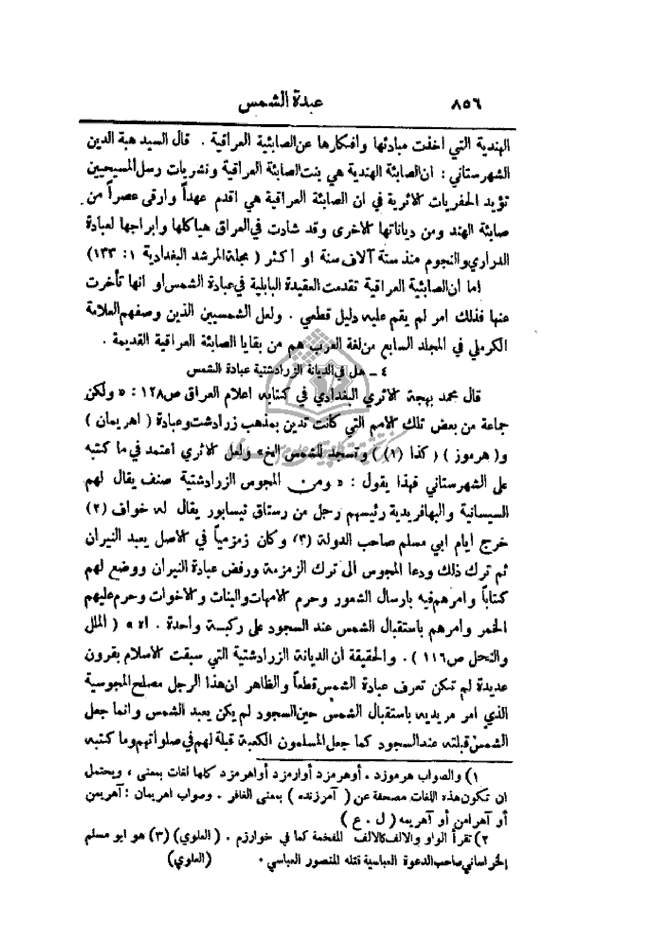 والحقيقة أن الديانة الزرادشتية التي سبقت الإسلام بقرون عديدة لم تكن تعرف عبادة الشمس قطعاً والظاهر أن هذا الرجل مصلح المجوسية الذي أمر مريديه باستقبال الشمس حين السجود لم يكن يعبد الشمس وإنما جعل الشمس قبلته عند السجود كما جعل المسلمون الكعبة قبلة لهم في صلواتهم وما كتبه