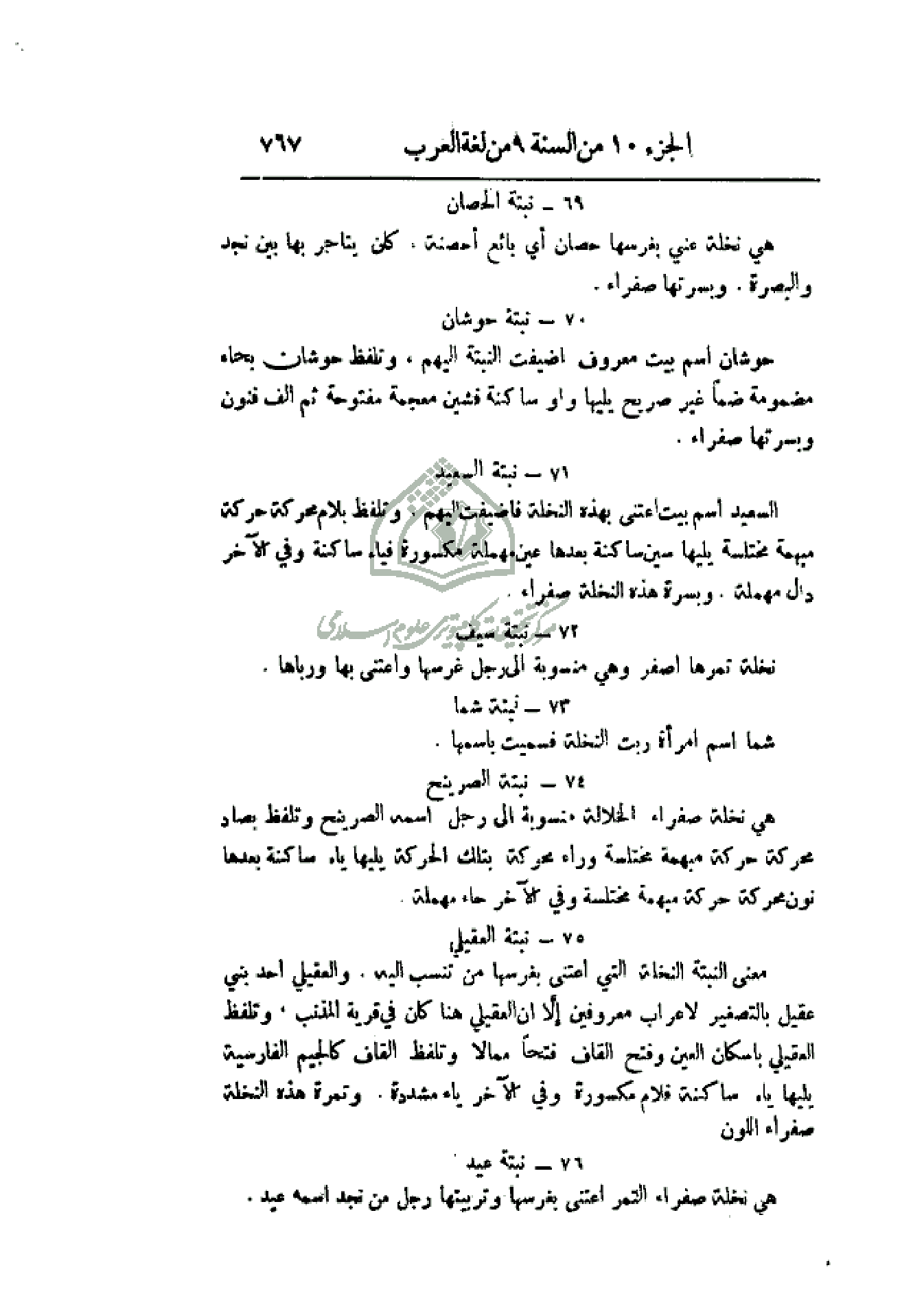 معنى النبتة النخلة التي اعتنى بغرسها من تنسب إليه. والعقيلي أحد بني عقيل بالتصغير لإعراب معروفين إلا أن العقيلي هنا كان في قرية المذنب، وتلفظ العقيلي باسكن العين وفتح القاف فتحاً ممالا وتلفظ القاف كالجيم الفارسية يليها ياء ساكنة فلام مكسورة وفي الآخر ياء مشددة. تمرة هذه النخلة صفراء اللون.