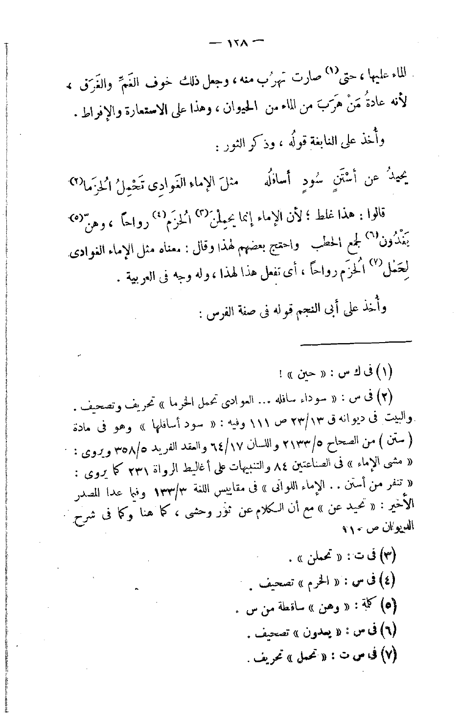 وأُخذ على النابغة قولُه، وذكر الثور: