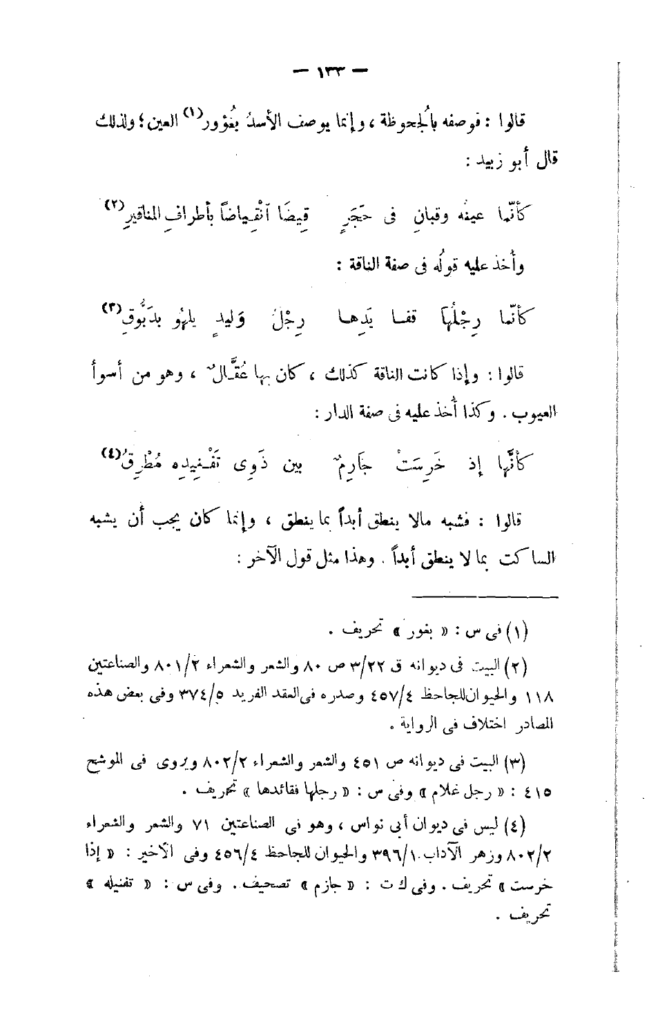 قالوا: فشبه ما لا ينطق أبداً بما ينطق، وإنما كان يجب أن يشبه الساكت بما لا ينطق أبداً، وهذا مثل قول الآخر: