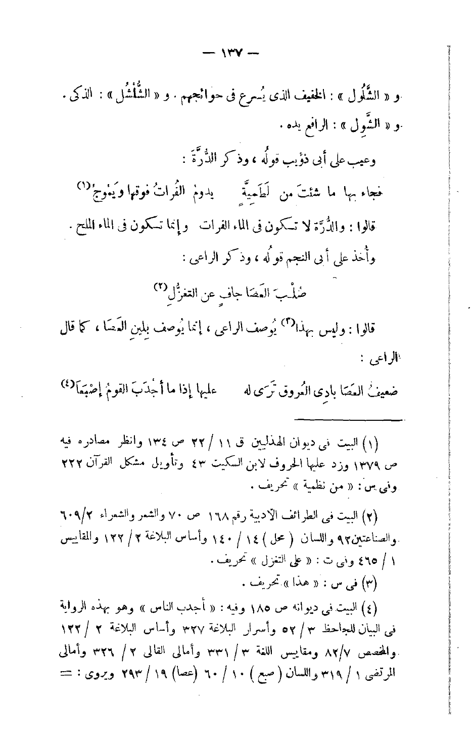 وعيب على أبي ذؤيب قولُه، وذكر الدُّرَّةَ: