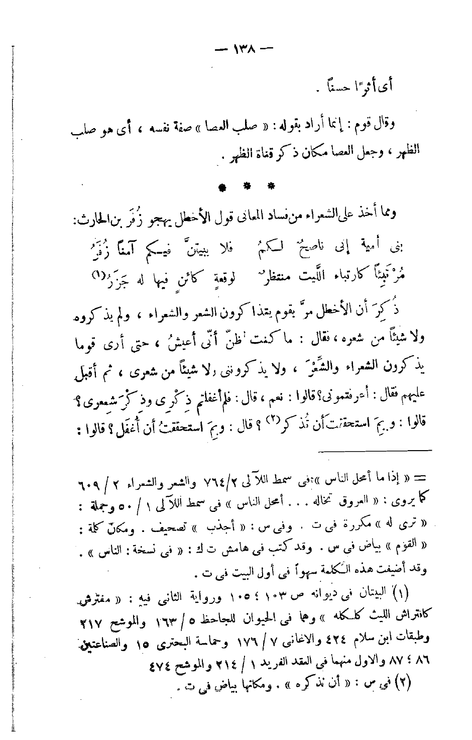 ومما أخذ على الشعراء من فساد المعاني قول الأخطل يهجو زُفَر بن الحارث: