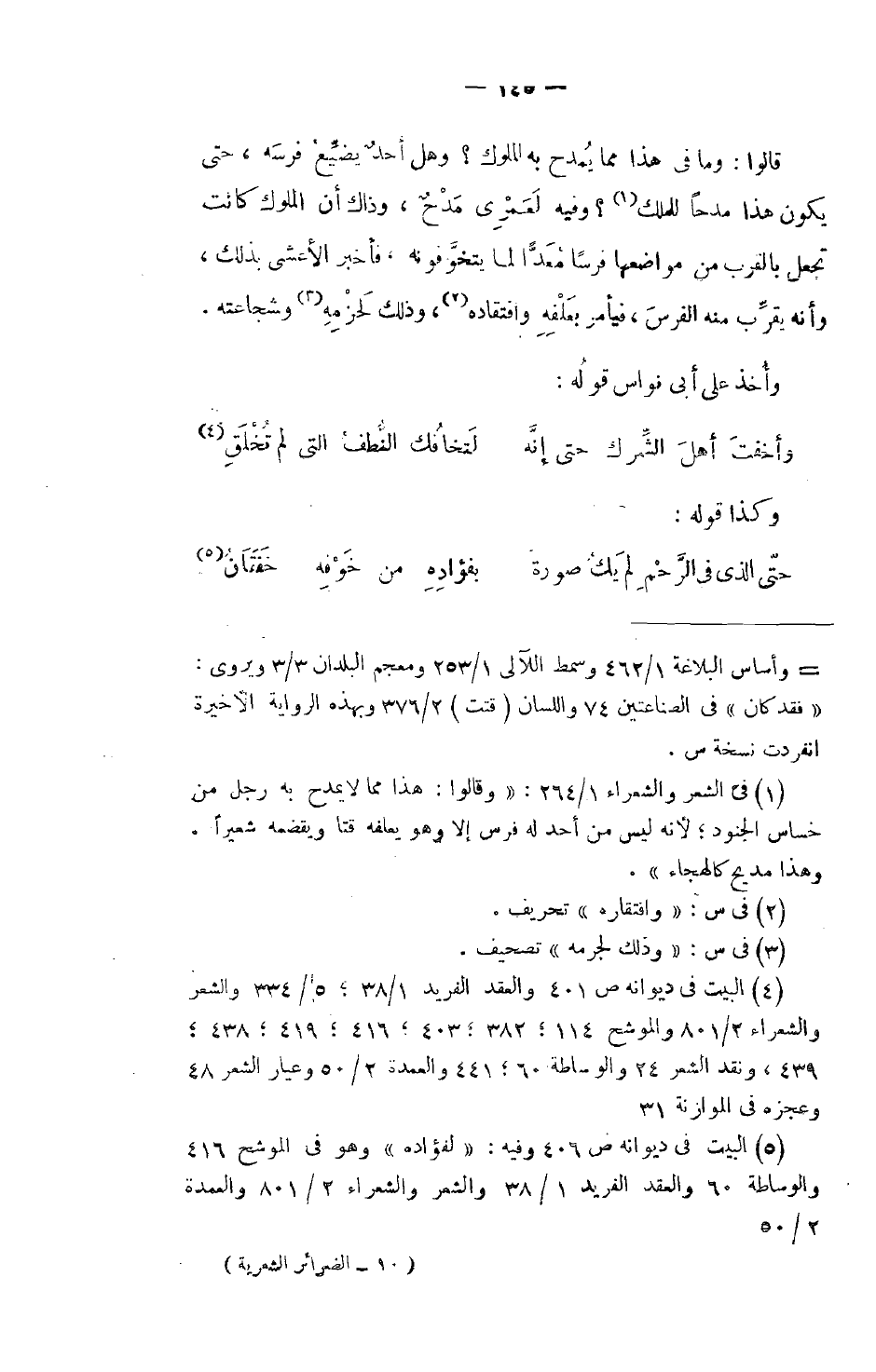 قالوا: وما في هذا مما يُمدح به الملوك؟ وهل أحدٌ يضيِّعُ فرسَه؛ حتى يكون هذا مدحاً للملك؟ وفيه لَعَمرِي مَدْحٌ، وذاك أن الملوك كانت تجعل بالقرب من مواضعها فرساً مُعَدّاً لما يتخوَّفونه، فأخبر الأعشى بذلك، وأنه يقرََّب منه الفرسَ، فيأمر بعَلْفِهِ وافتقاده، وذلك لحَزْمِهِ وشجاعته.