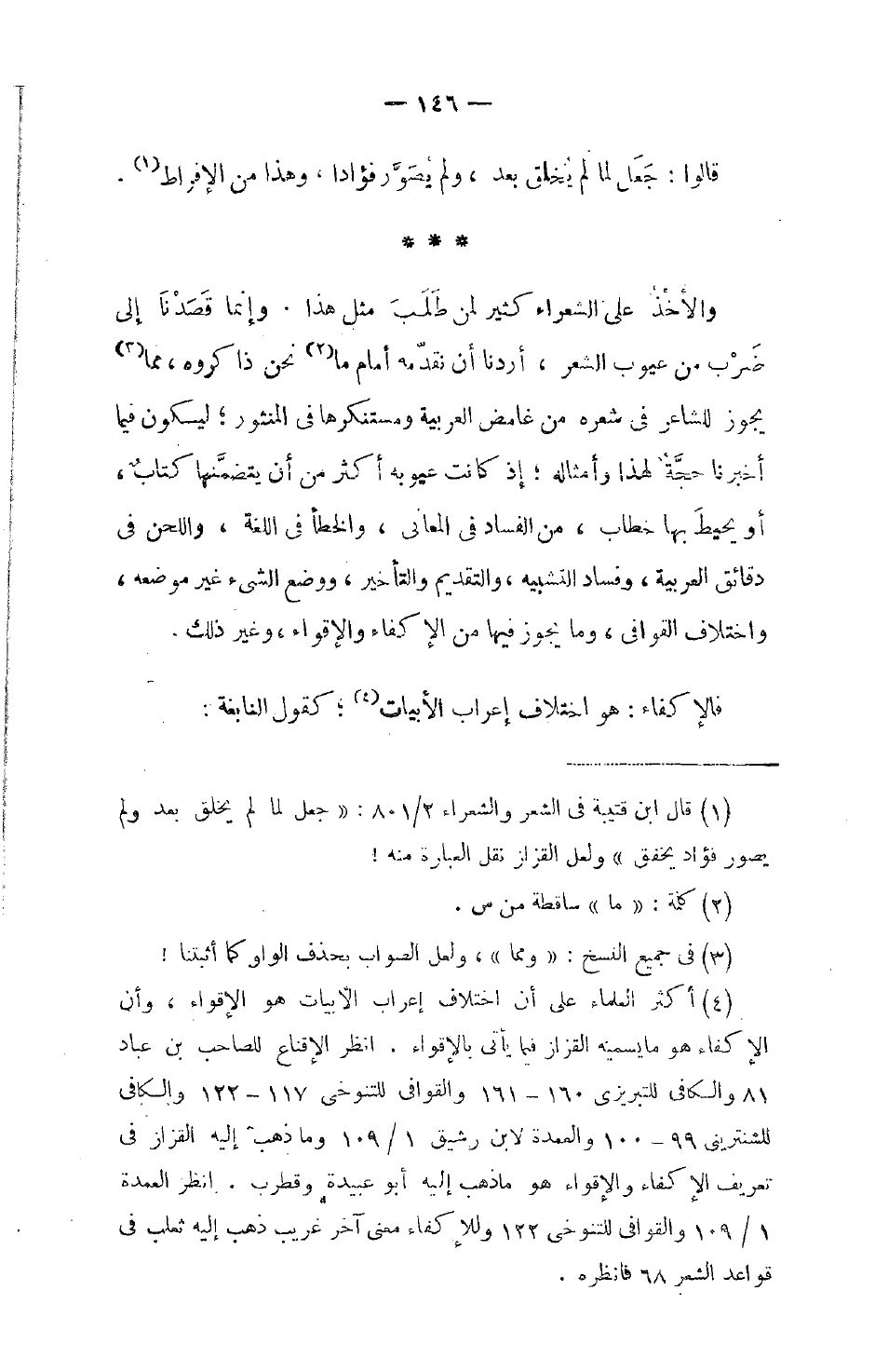 والأخْذُ على الشعراءِ كثيراً لم طَلَبَ مثل هذا، وإنما قَصَدْنَا إلى ضَرْب من عيوب الشعر، أردنا أن نقدّمه أمام ما نحن ذاكروه، مما يجوز للشاعر في شعره من غامض العربية