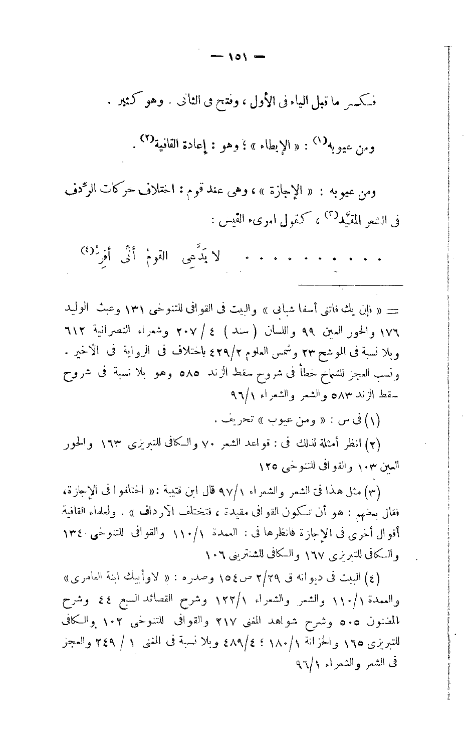 ومن عيوبه: الإيطاء، وهو: إعادة القافية.