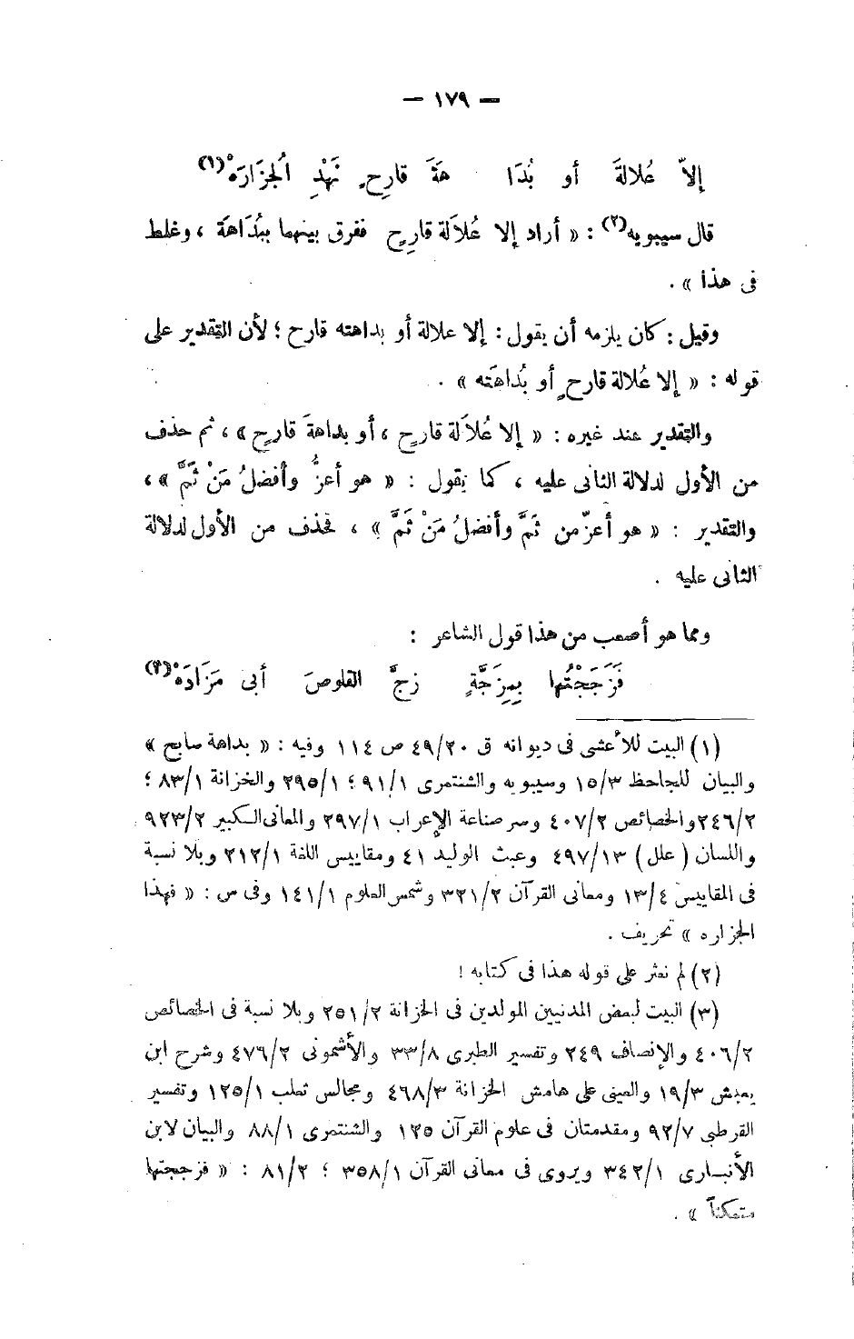 وقيل: كان يلزمه أن يقول: إلا علالة أو بداهته قارح؛ لأن التقدير على قوله: إلا عُلالة قارحٍ أو بُداهتَه.