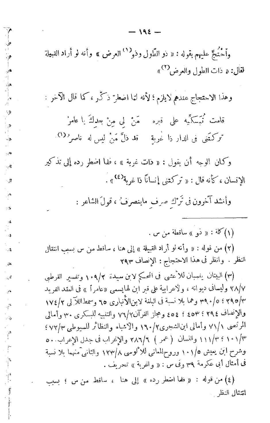 واحْتُجَّ عليهم بقوله: ذو الطّول وذو العرض وأنه لو أراد القبيلة لقال: ذات الطول والعرض.