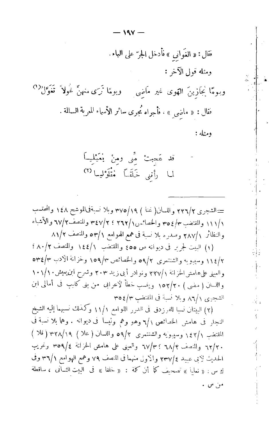 فقال: الغَوانِي فأدخل الجرّ على الياء.