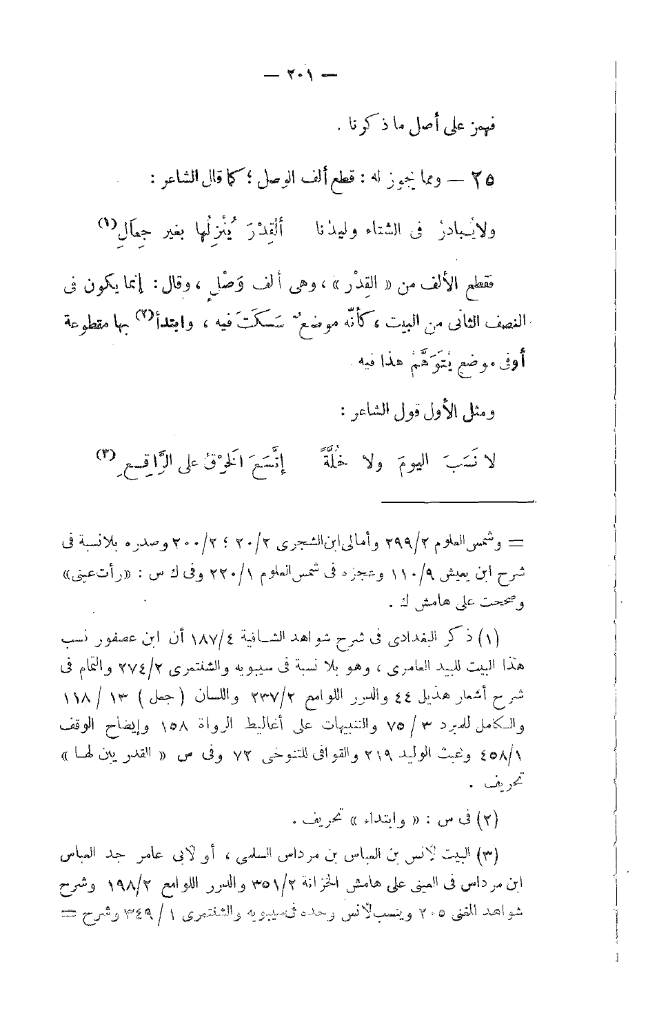 فقطع الألف من القِدْر، وهي ألف وَصْلٍ، وقال: إنما يكون في النصف الثاني من البيت، كأنَّه موضعٌ سَكَتَ فيه، وابتدأ بها مقطوعة أو في موضع يُتَوَهَّمُ هذا فيه.