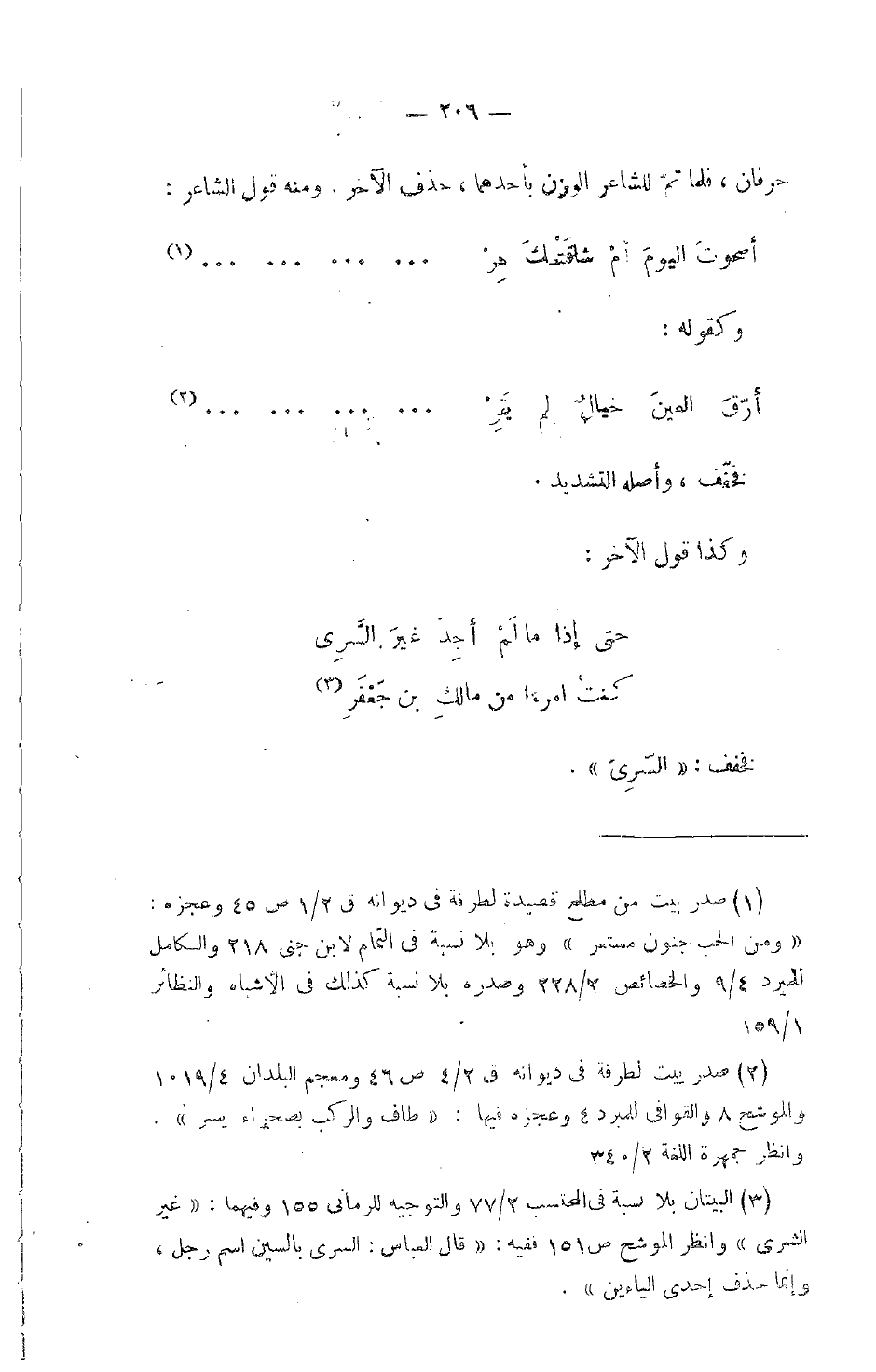 حرفان، فلما تمّ للشاعر الوزن بأحدهما، حذف الآخر، ومنه قول الشاعر:
