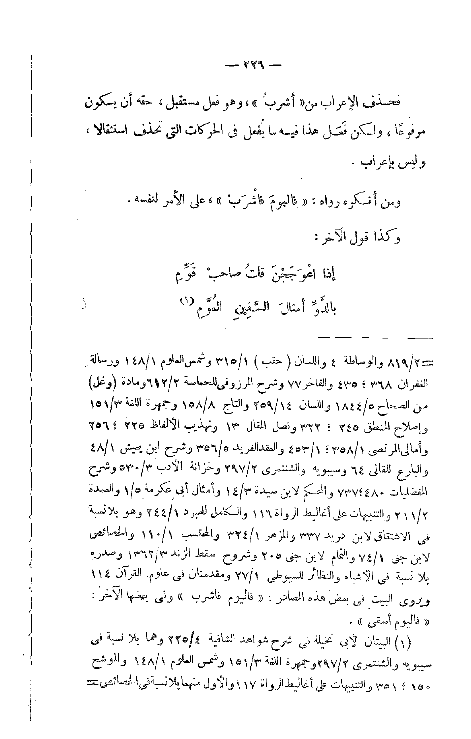 ومن أنكره رواه: فاليومَ فاشْرَبْ، على الأمر لنفسه.