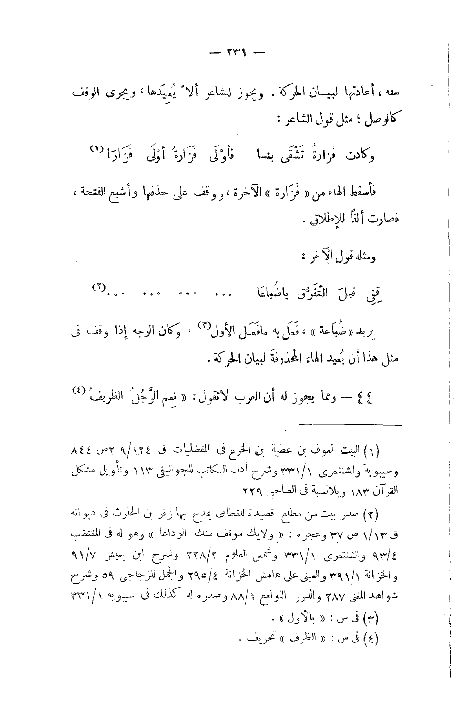 منه، أعادتها لبيان الحركة. ويجوز للشاعر ألاّ يُعِيدَها، ويجري الوقف كالوصل؛ مثل قول الشاعر:
