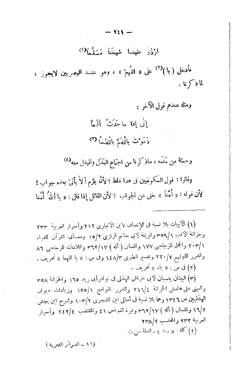 فأدخل (يا) على اللَّهمّ، وهو عند البصريين لا يجوز، لما ذكرنا. ومثله عندهم قول الآخر:
