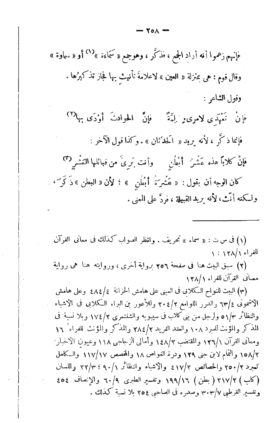 كان الوجه أن يقول: عَشْرَةُ أبْطُنٍ؛ لأن البطن ذَكَرٌ، ولكنه أنّث، لأنه يريد القبيلة، فردَّ على المعنى.