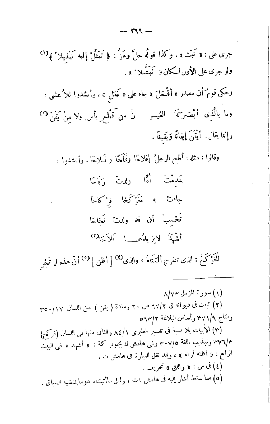 جرى على: نَبَت. وكذا قولُه جلَّ وعَزَّ:} َتَبَتَّلْ إِلَيْهِ تَبْتِيلاً} ولو جرى على الأول لكان تَبْتُّلاً.