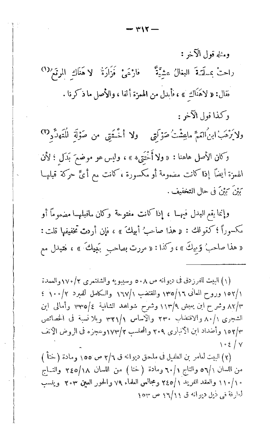 فقال: لا هَنَاكِ، فأبدل من الهمزة ألفاً، والأصل ما ذكرنا.