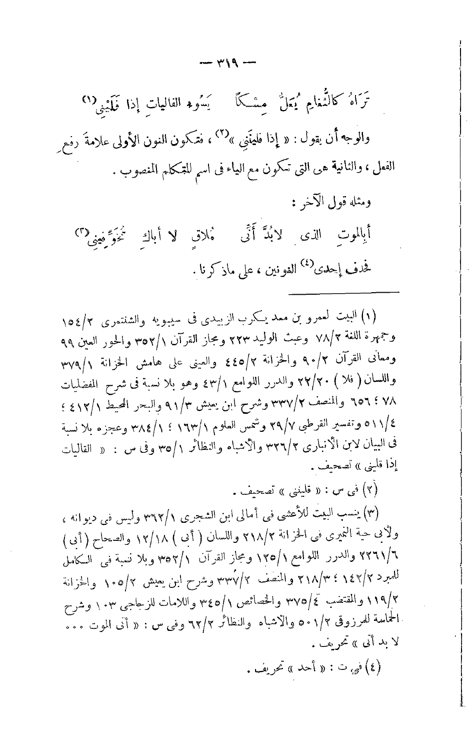 والوجه أن يقول: إذا فلينَنِي، فتكون النون الأولى علامةَ رفعِ الفعل، والثانية هي التي تكون مع الياء في اسم المتكلم المنصوب.