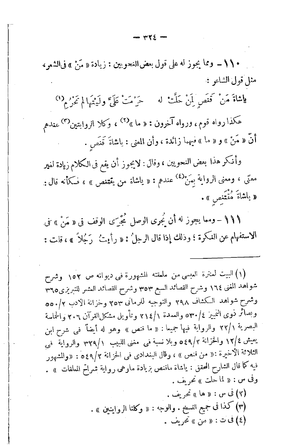 110 - ومما يجوز له على قول بعض النحويين: زيادة مِنْ في الشعر، مثل قول الشاعر: