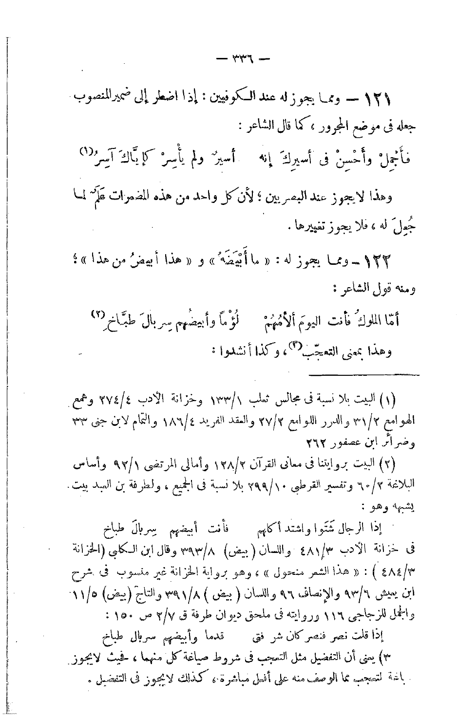121 - ومما يجوز له عند الكوفيين: إذا اضطر إلى ضمير المنصوب جعله في موضع المجرور، كما قال الشاعر: