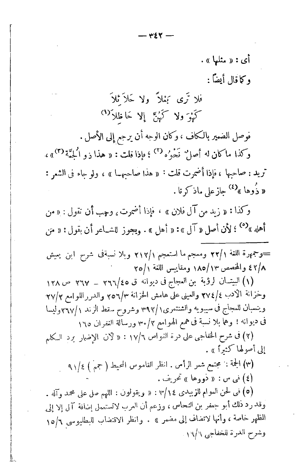وكذا ما كان له أصلٌ نحْوُه؛ فإذا قلت: هذا ذو الجُمَّة، تريد: صاحبها، فإذا أضمرت قلت: هذا صاحبها، ولو جاء في الشعر: ذُوها جاز على ما ذكرنا.