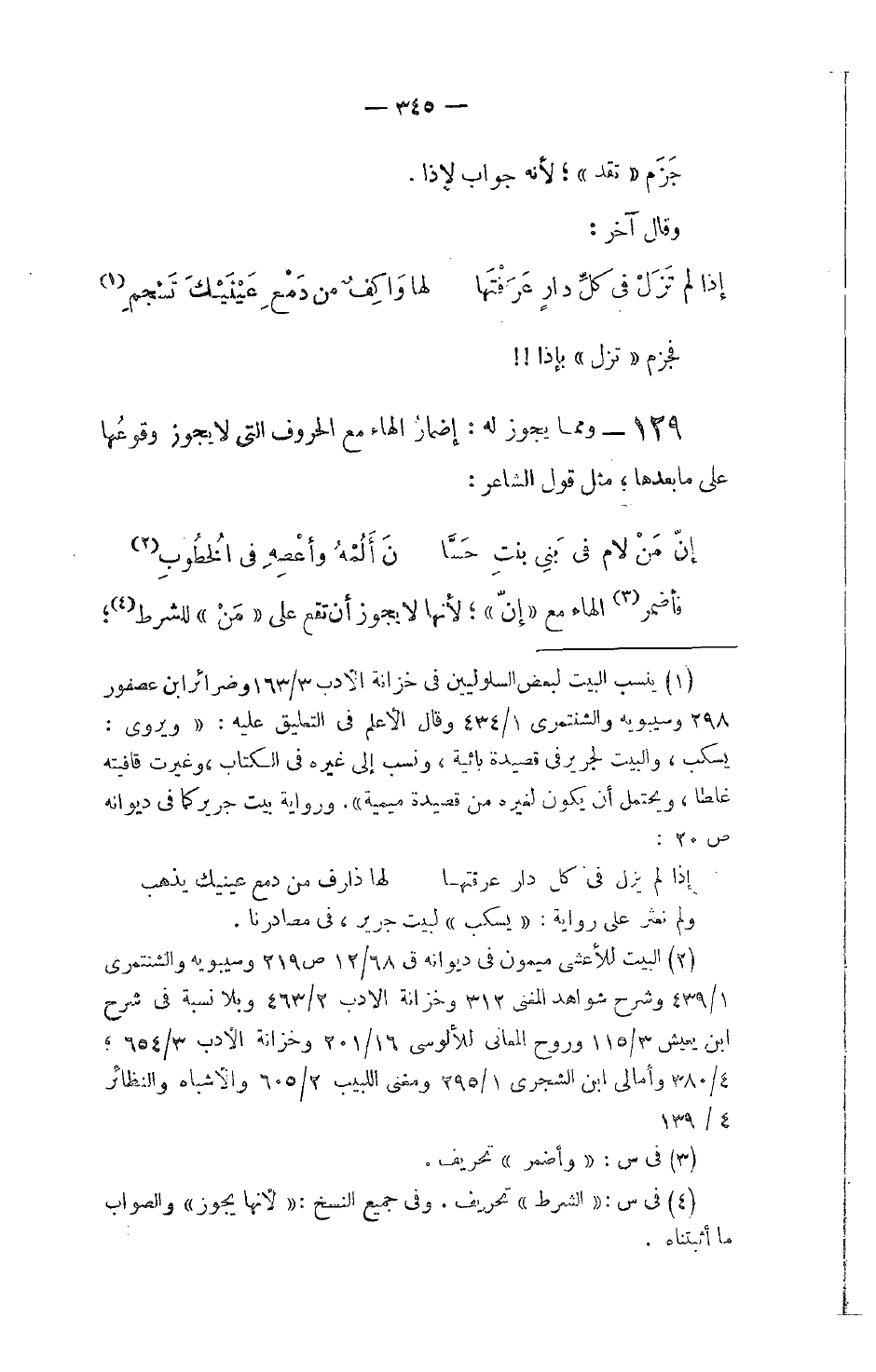 129 - ومما يجوز له: إضمارُ الهاء مع الحروف التي لا يجوز وقوعُها على ما بعدها؛ مثل قول الشاعر: