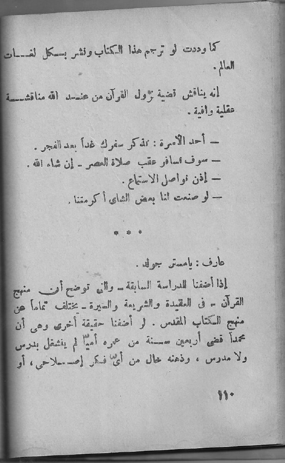 إذا أضفنا للدراسة السابقة - والتي توضح أن منهج القرآن - في العقيدة والشريعة والسيرة - يختلف تماماً عن منهج الكتاب المقدس. لو أضفنا حقيقة أخرى وهي أن محمداً - صلى الله عليه وسلم - قضى أربعين سنة من عمره أميًّا لم ينشغل بدرس ولا مدرس، وذهنه خال من أي فكر إصلاحي، أو