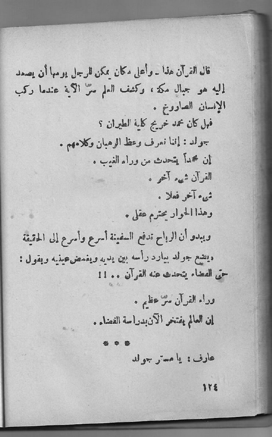 ويبدو أن الرياح تدفع السفينة أسرع وأسرع إلى الحقيقة "يضع جولد بيارد رأسه بين يديه ويغمض عينيه ويقول: حتى الفضاء يتحدث عنه القرآن .. !!