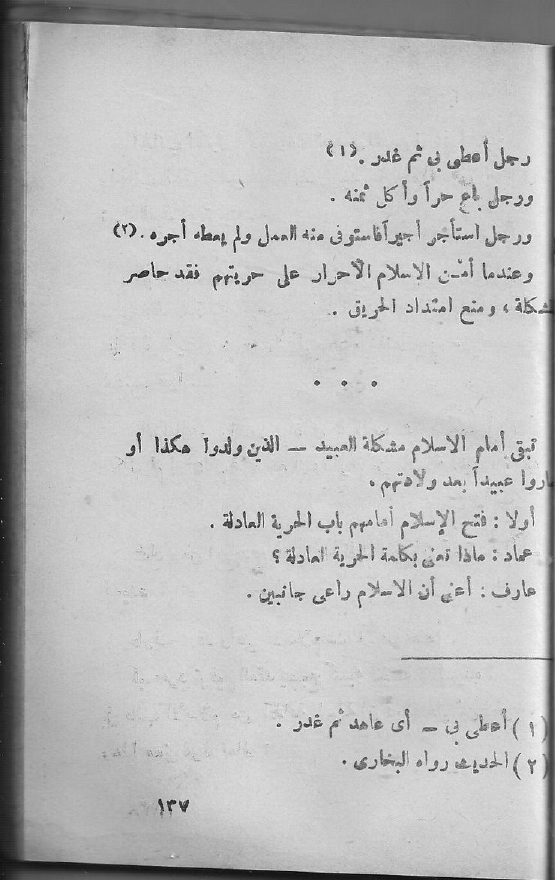 تبقى أمام الإسلام مشكلة العبيد - الذين ولدوا هكذا أو صاروا عبيداً بعد ولادتهم.