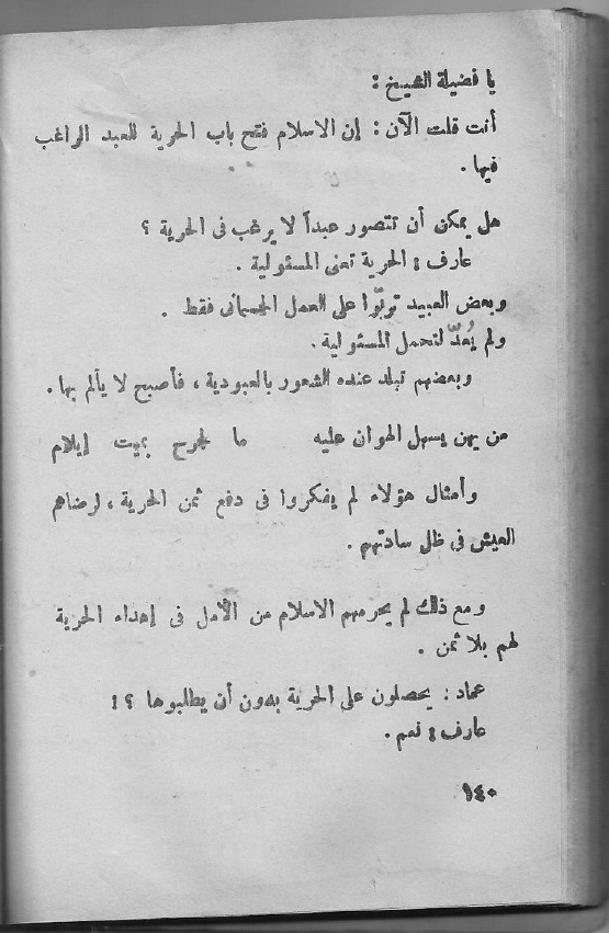 وأمثال هؤلاء لم يفكروا في دفع ثمن الحرية، لرضاهم العيش في ظل سادتهم.