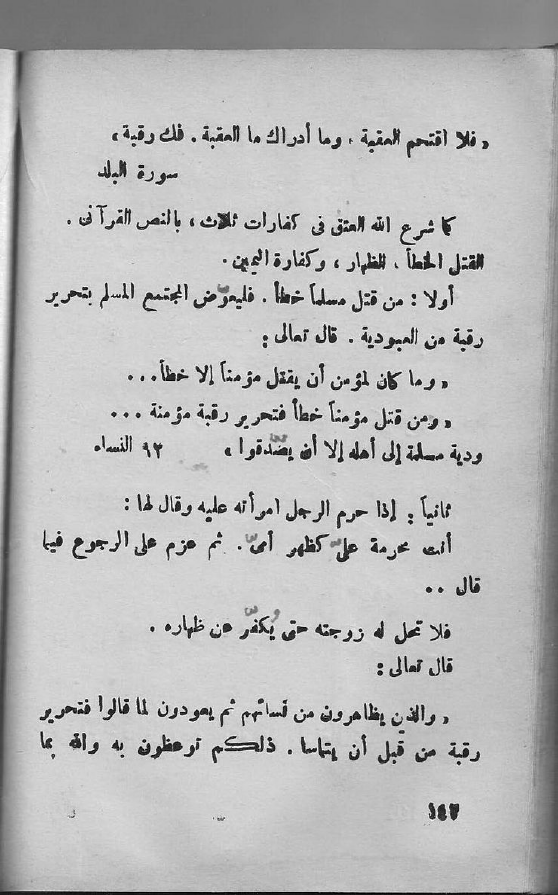 {وَمَا كَانَ لِمُؤْمِنٍ أَنْ يَقْتُلَ مُؤْمِنًا إِلَّا خَطَأً وَمَنْ قَتَلَ مُؤْمِنًا خَطَأً فَتَحْرِيرُ رَقَبَةٍ مُؤْمِنَةٍ وَدِيَةٌ مُسَلَّمَةٌ إِلَى أَهْلِهِ إِلَّا أَنْ يَصَّدَّقُوا} 92 النساء
