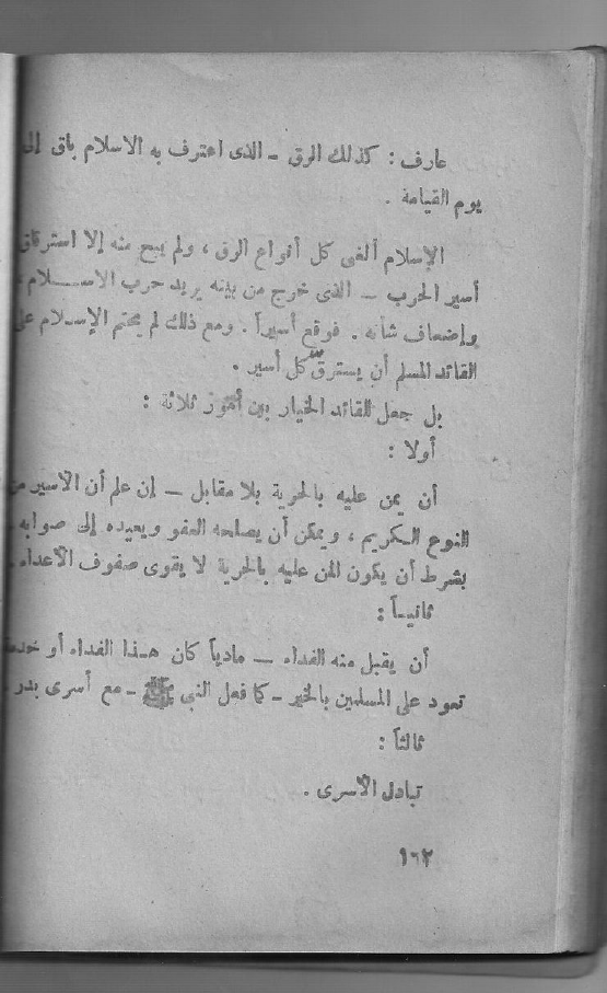 الإسلام ألغى كل أنواع الرق، ولم يبح منه إلى استرقاق أسير الحب - الذي خرج من بينه يريد حرب الإسلام، وإضعاف شأنه. فوقع أسيراً. ومع ذلك لم يحتم الإسلام على القائد المسلم أن يسترق كل أسير.