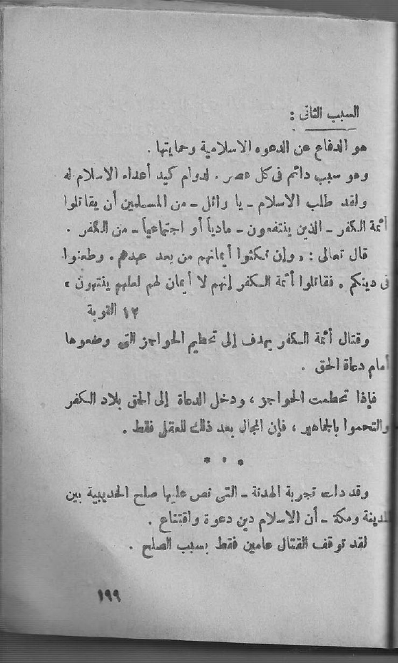 وهو سبب دائم في كل عصر. لدوام كيد أعداء الإسلام له ولقد طلب الإسلام - يا وائل - من المسلمين أن يقاتلوا أئمة الكفر - الذين ينتفعون - مادياً أو اجتماعياً - من الكفر.
