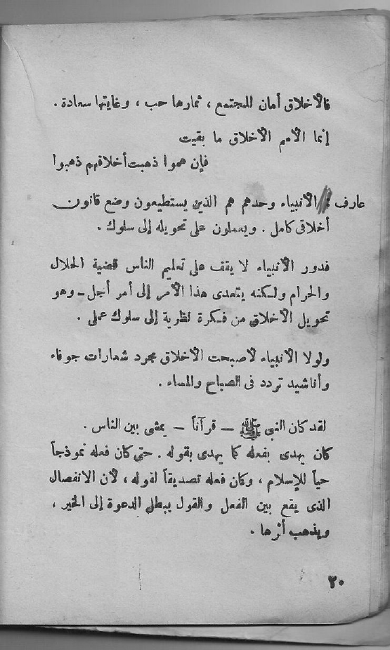 فدور الأنبياء لا يقف على تعليم الناس قضية الحلال والحرام ولكنه يتعدى هذا الأمر إلى أمر أجل - وهو تحويل الأخلاق من فكرة نظرية إلى سلوك عملي.