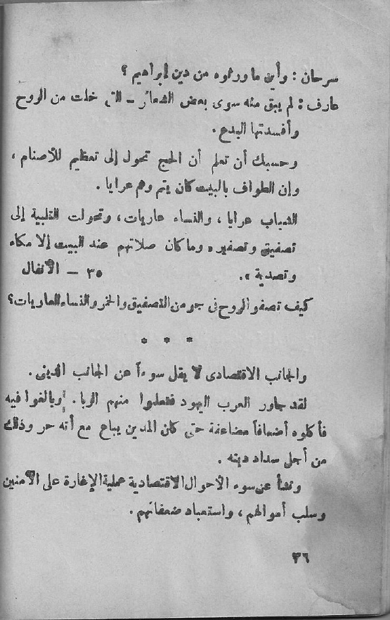 الشباب عرايا، والنساء عاريات، وتحولت التلبية إلى تصفيق وتصفير {وَمَا كَانَ صَلَاتُهُمْ عِنْدَ الْبَيْتِ إِلَّا مُكَاءً وَتَصْدِيَةً} 35 الأنفال