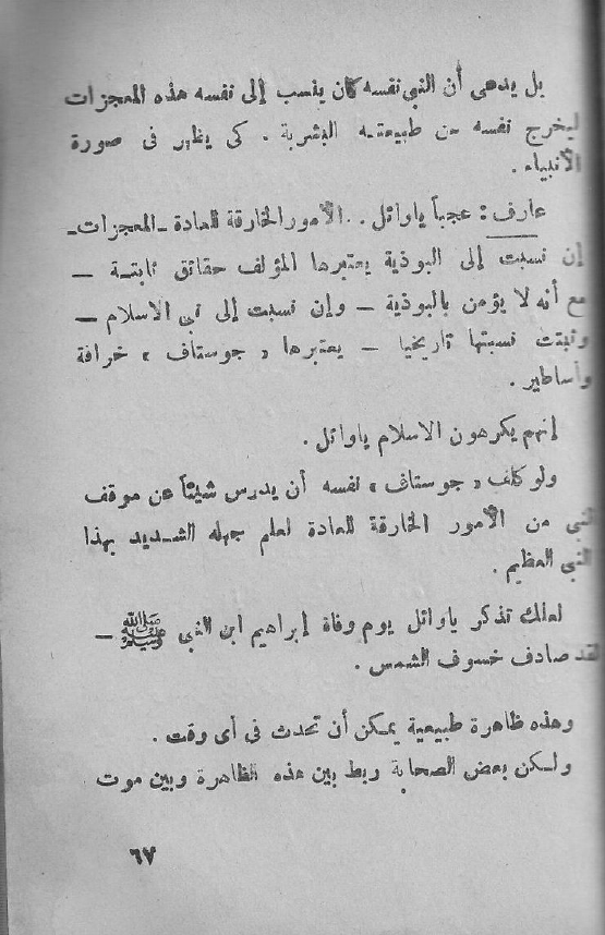 عارف: عجباً يا وائل .. الأمور الخارقة للعادة - المعجزات - إن نسبت إلى البوذية يعتبرها المؤلف حقائق ثابتة - مع أنه لا يؤمن بالبوذية - وإن نسبت إلى نبي الإسلام - وثبتت نسبتها تاريخيا - يعتبرها "جوستاف" خرافة وأساطير.
